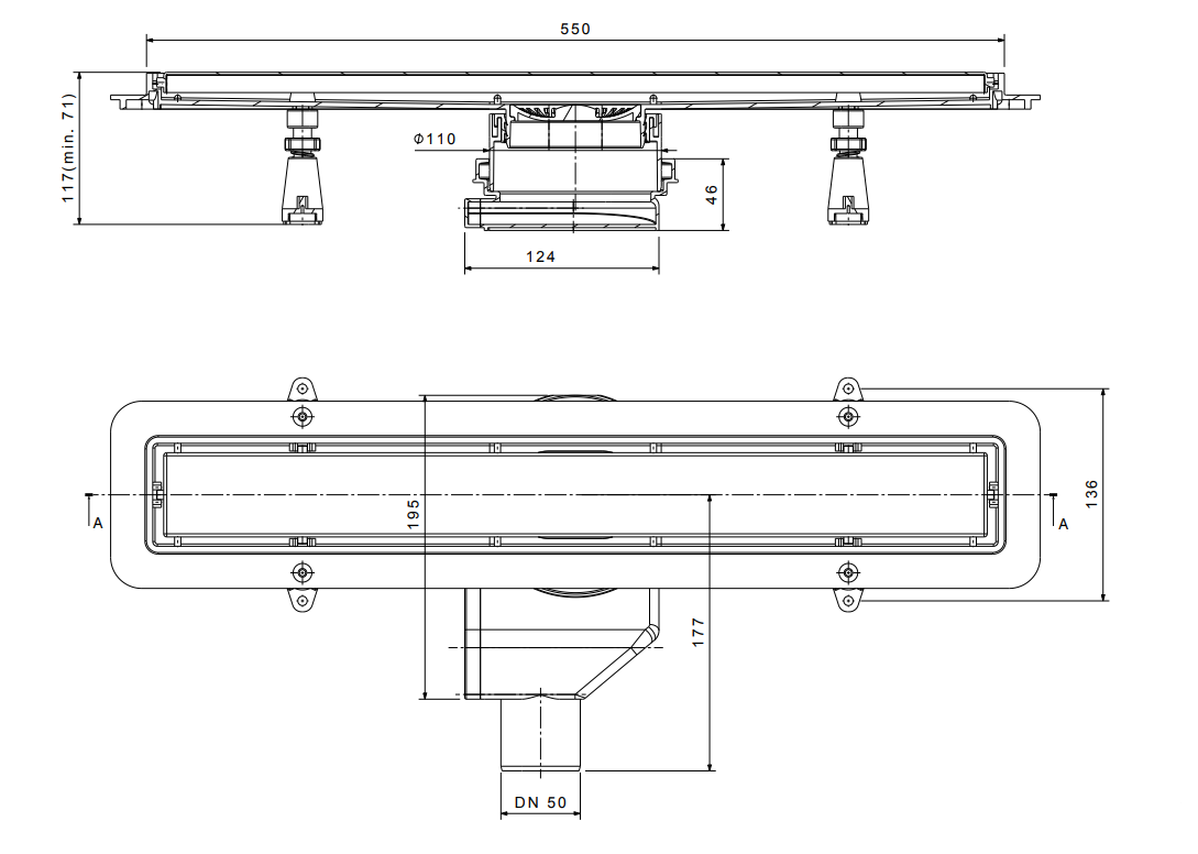Душевой лоток Pestan Confluo Premium Gold Line 550 с решеткой купить в Москве дешево