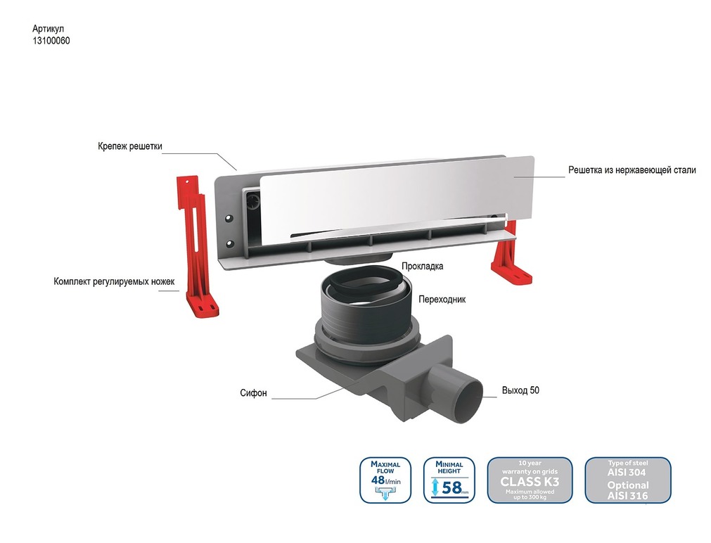 Душевой лоток в стену Pestan Confluo premium wall 13100060 купить в Москве дешево