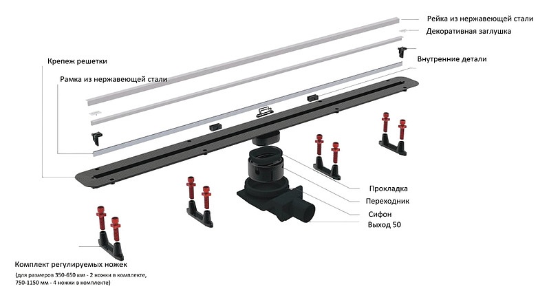 Душевой лоток Pestan Confluo Slim Line 1150 с решеткой 13100038 купить в Москве дешево
