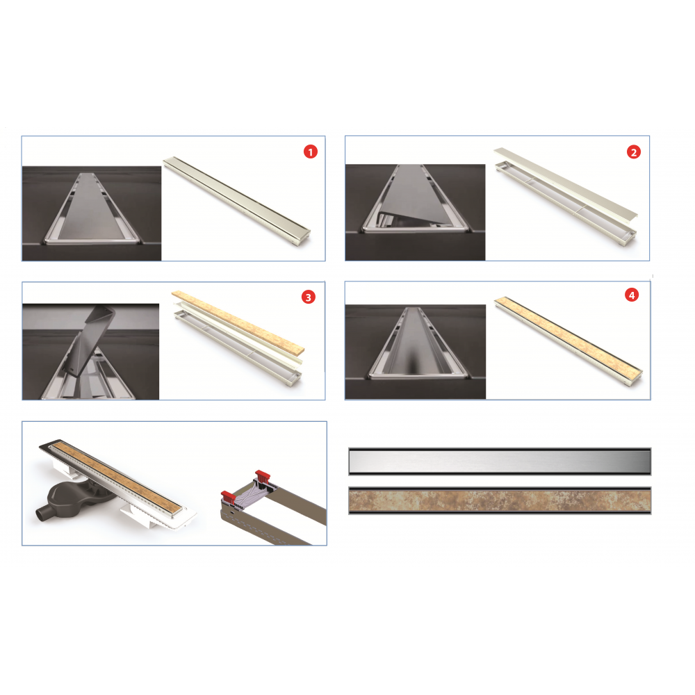 Двусторонняя установка решетки: металл и вклейка плиткис регулировкой по высоте от 8 до 25 мм