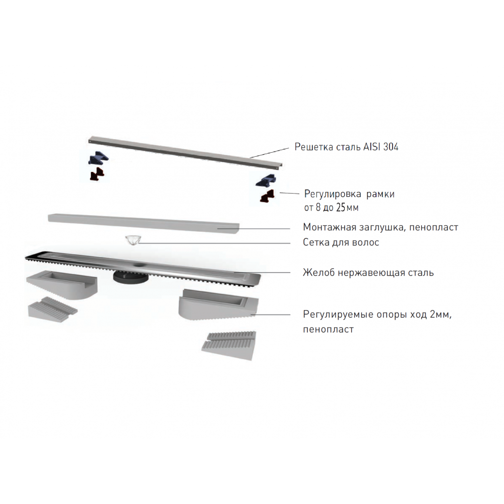 Решетка и желоб водосток, нержавеющая сталь AISI 304