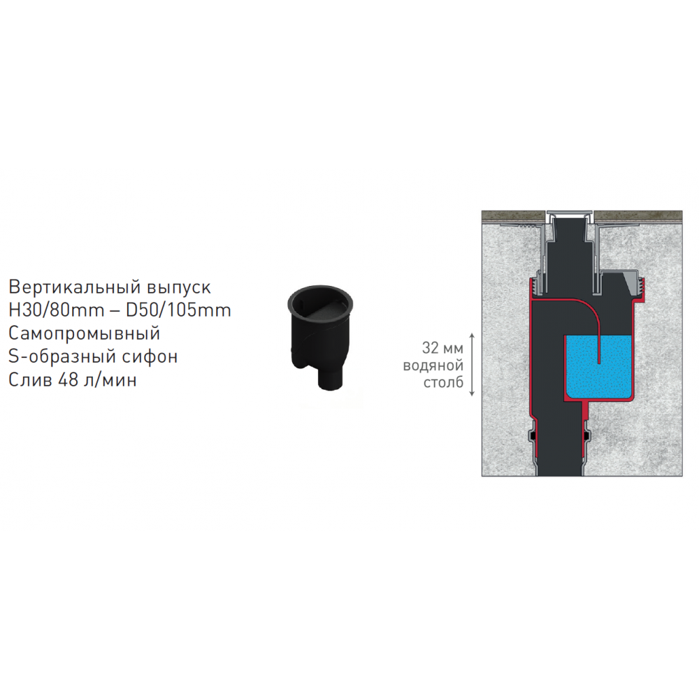 Горизонтальный выпуск D50 H60, пропускная способность 42л/мин, монтаж 360°