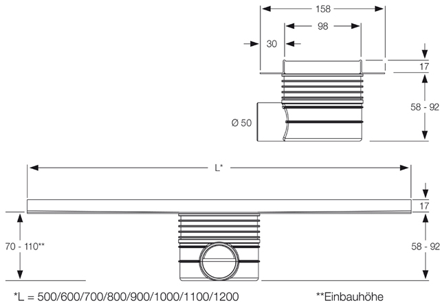 Душевой лоток (трап) Дренажный канал с решеткой для плитки Mepa Duschrinne Fliese (1000) 150328 купить в Москве дешево