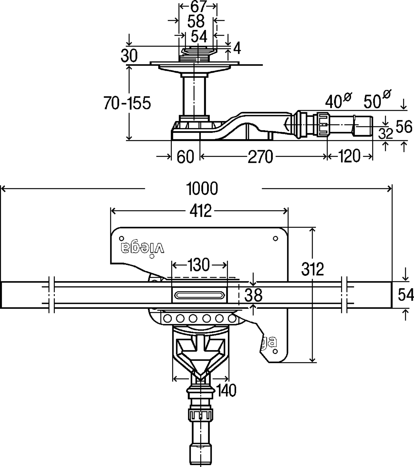 сифон / компенсатор по высоте / уплотнительная манжета / фланец |