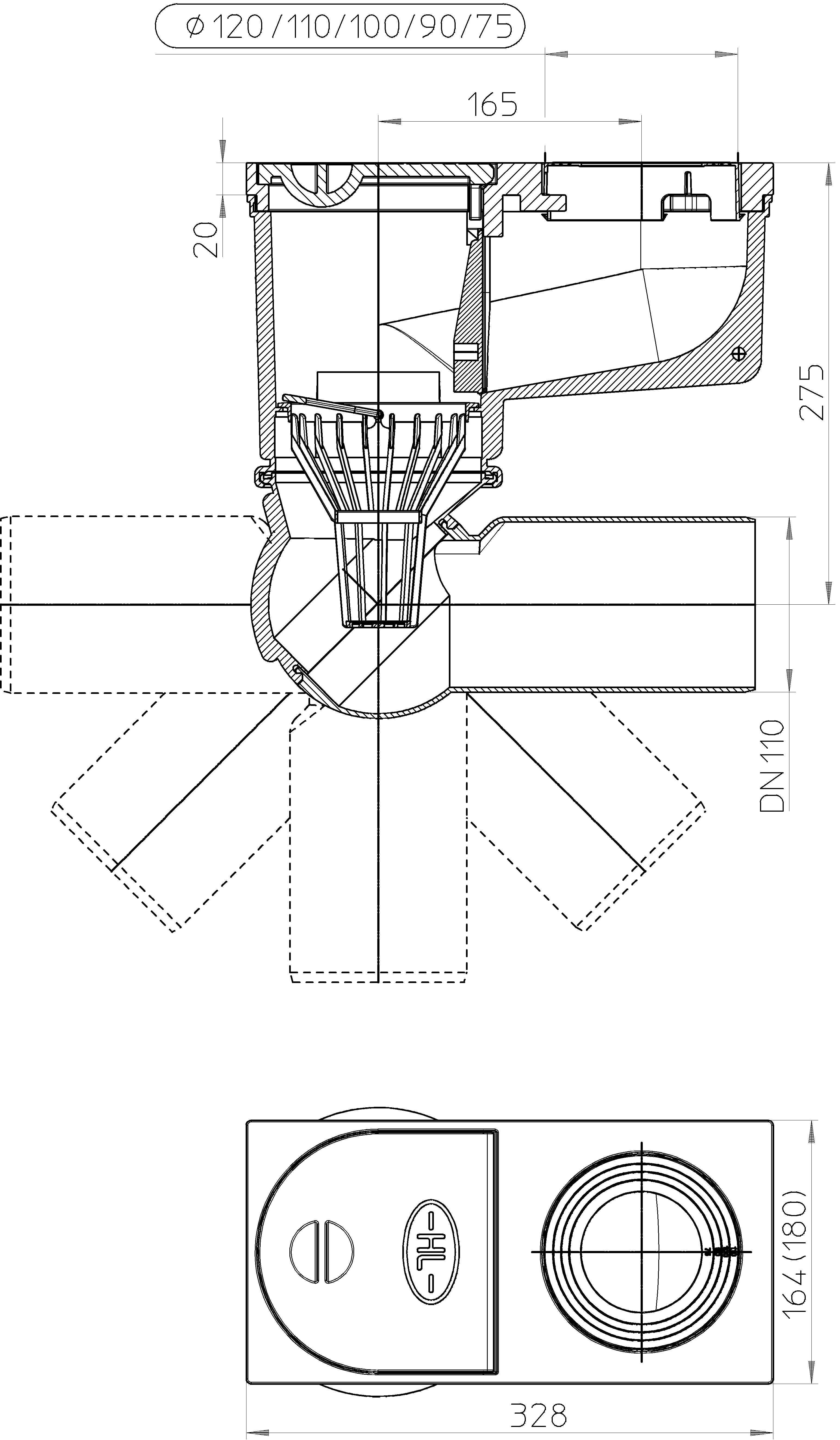 3. Выпускной патрубок трапа HL600G предназначен для соединения с любой канализационной раструбной трубой из ПВХ или ПП (REHAU, WAVIN и т.д.). Если для ливневой канализации применяются стальная или чугунная безраструбная труба (SML), необходимо использовать переходник с ПП/ПВХ на Чугун/Сталь.