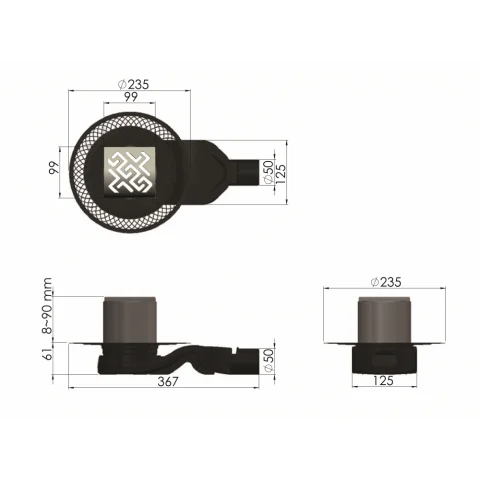 Горизонтальный выпуск D50 H60, пропускная способность 42л/мин, монтаж 360°