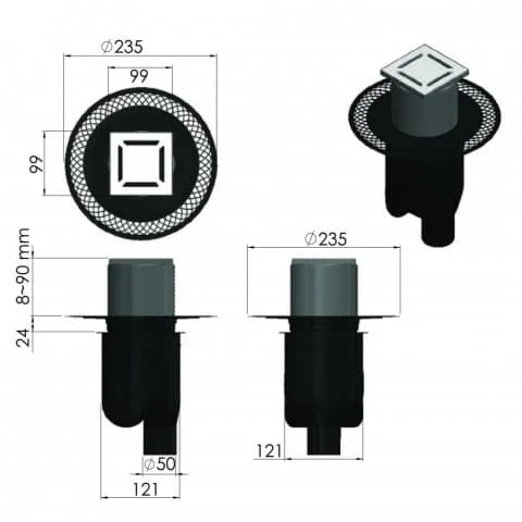 Вертикальный выпуск, пропускная способность 48л/мин, монтаж 360°