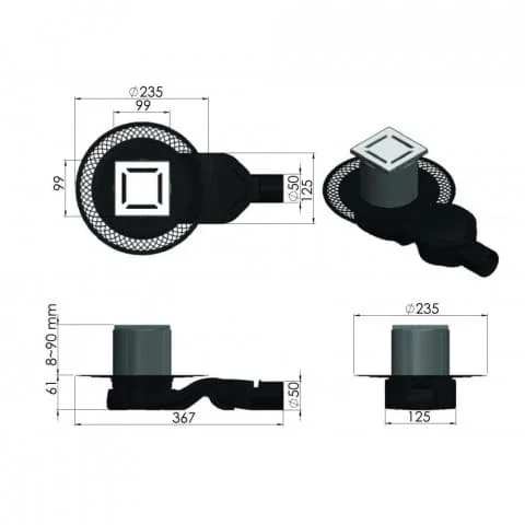 Горизонтальный выпуск D50 H60, пропускная способность 42л/мин, монтаж 360°