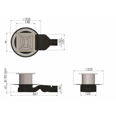 Горизонтальный выпуск D50 H60, пропускная способность 42л/мин, монтаж 360°