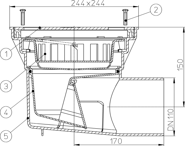 Трап предназначен для установки на улице или в неотапливаемых помещениях и отвода в канализацию сточных вод с уровня пола с допустимой нагрузкой на решетку до 1.5 тонн